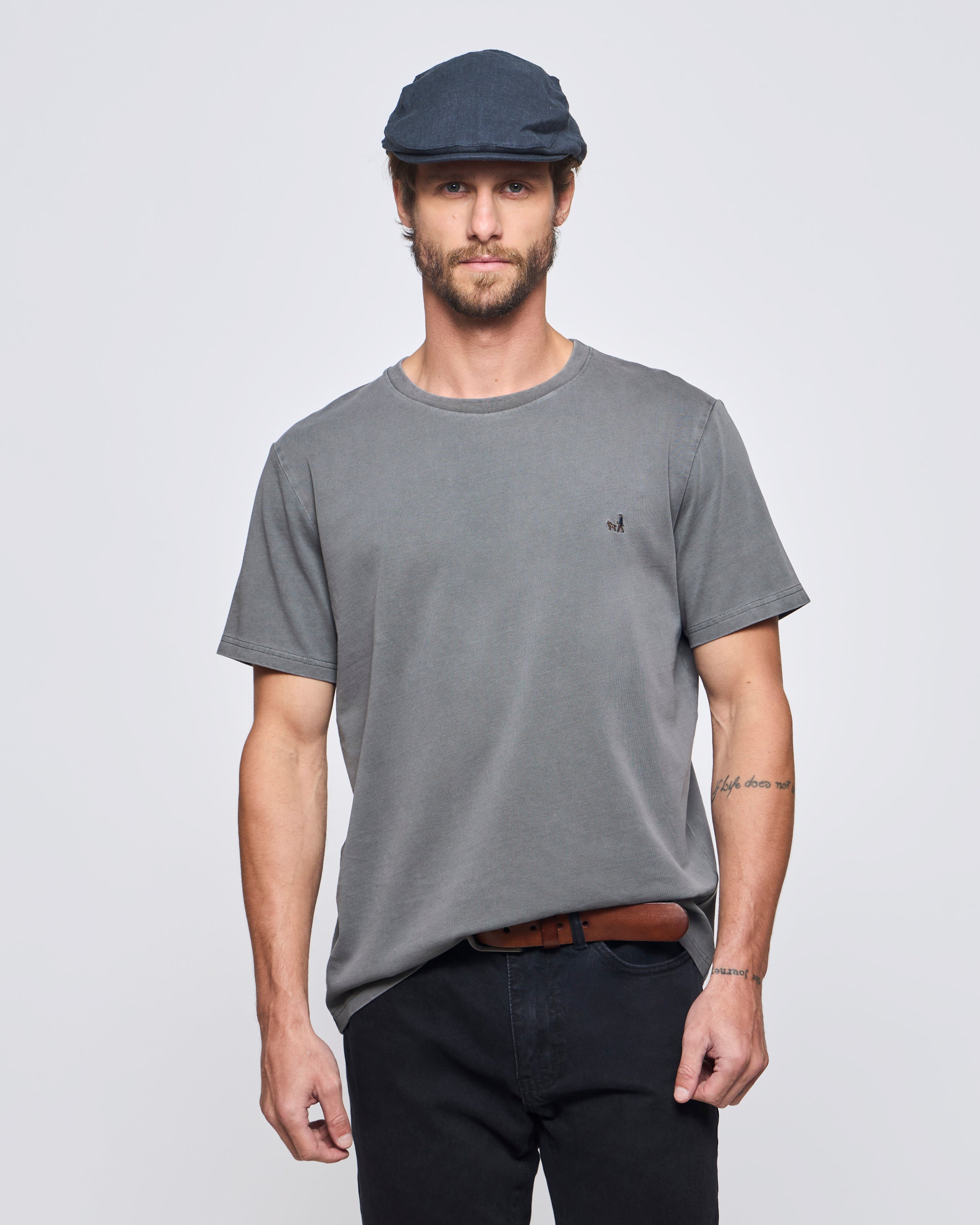 Polera Manga Corta Cuello Redondo Slub Estampada