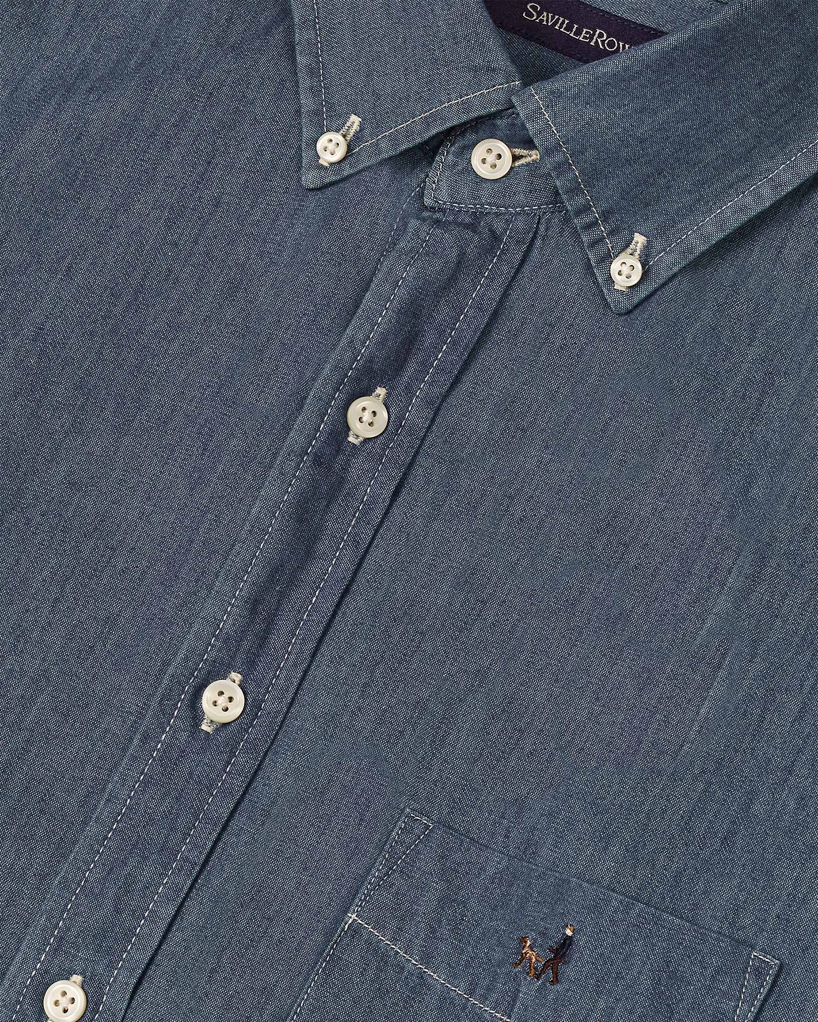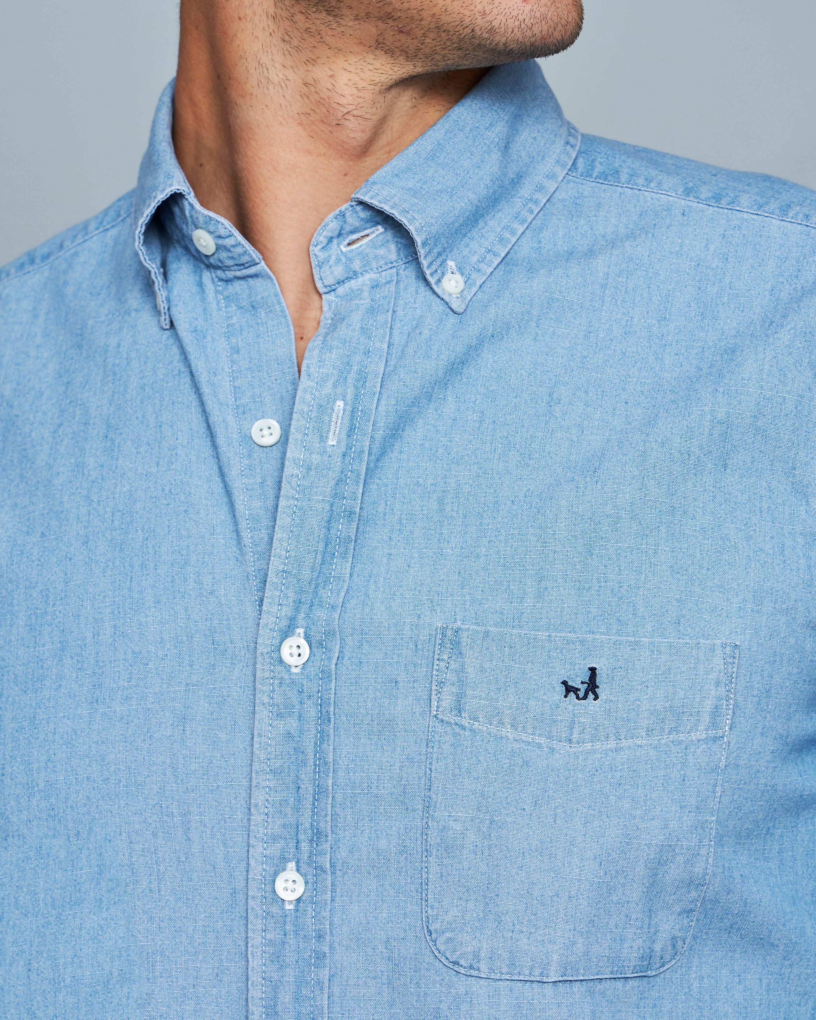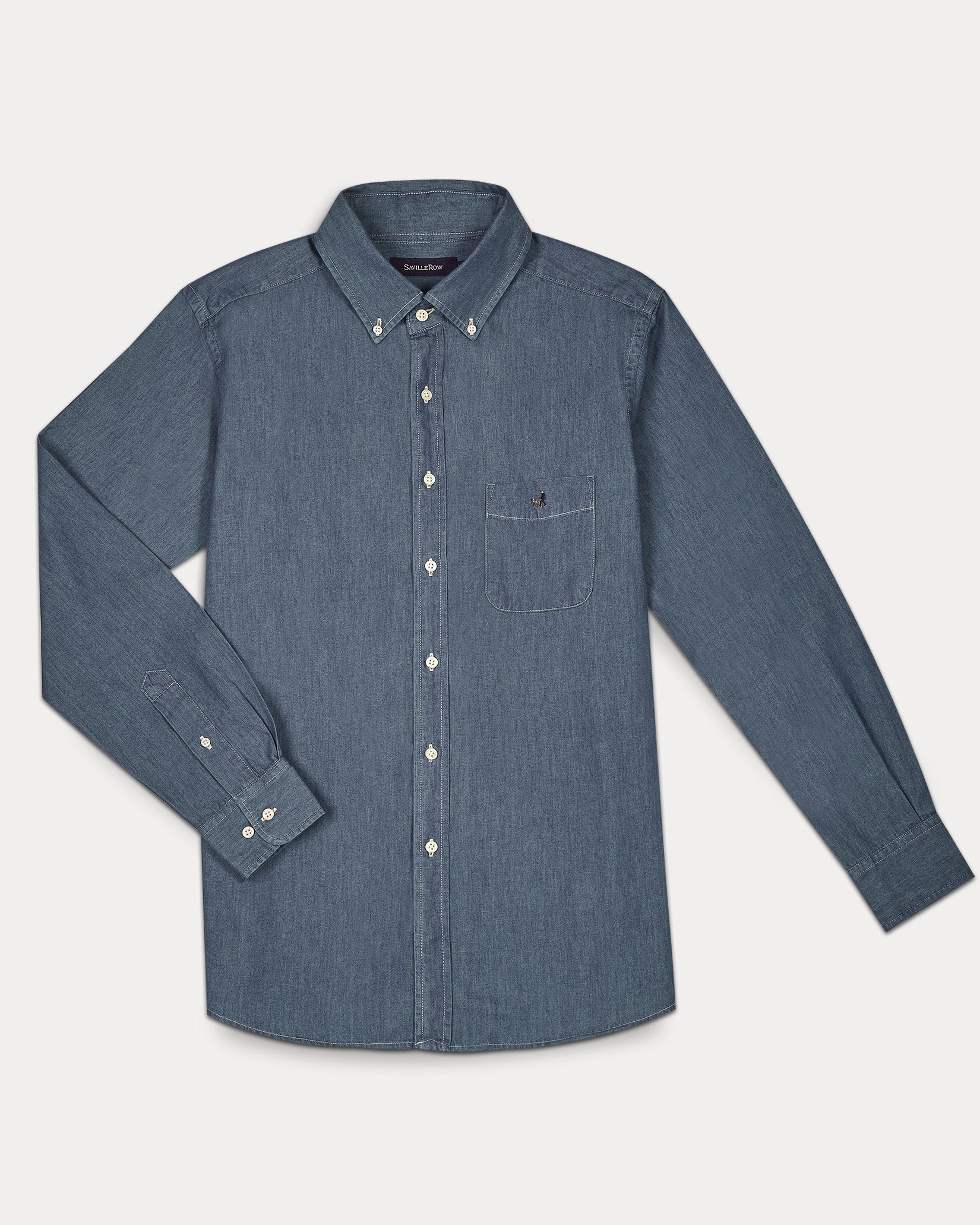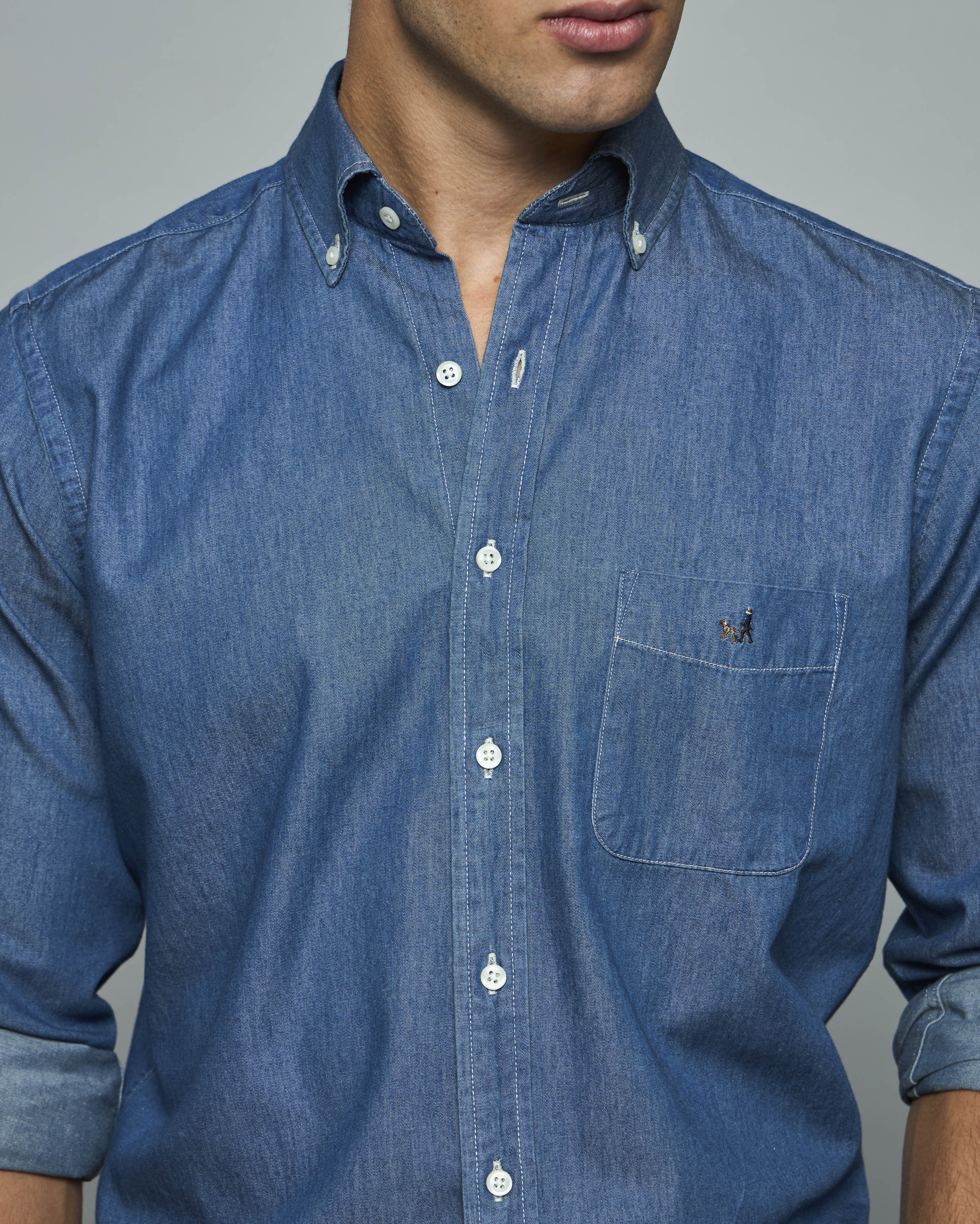 Camisa Button Down Manga Larga Lisa Chambray Indigo Sport
