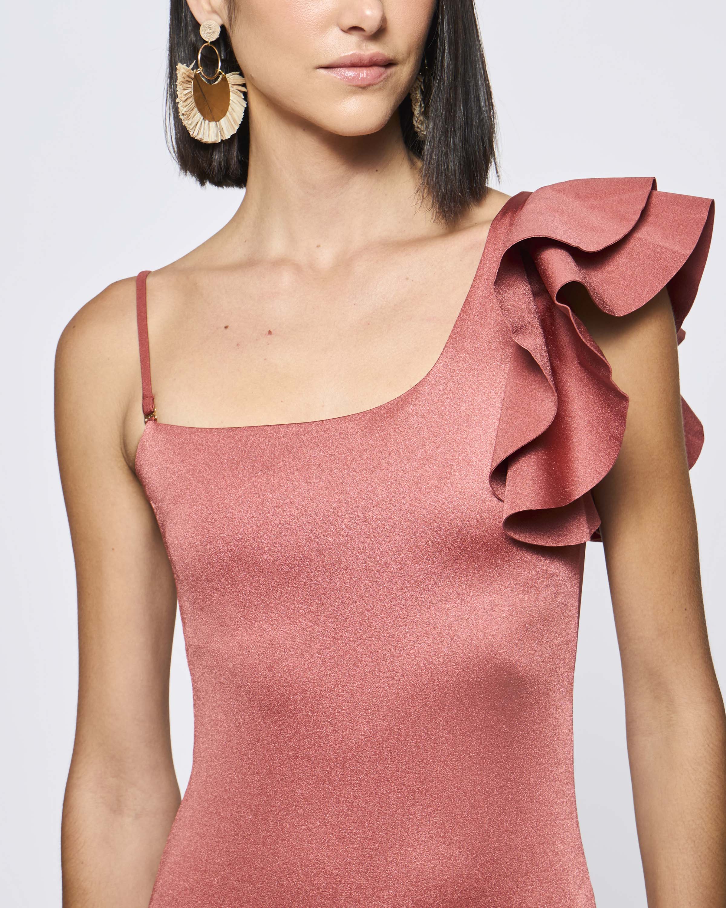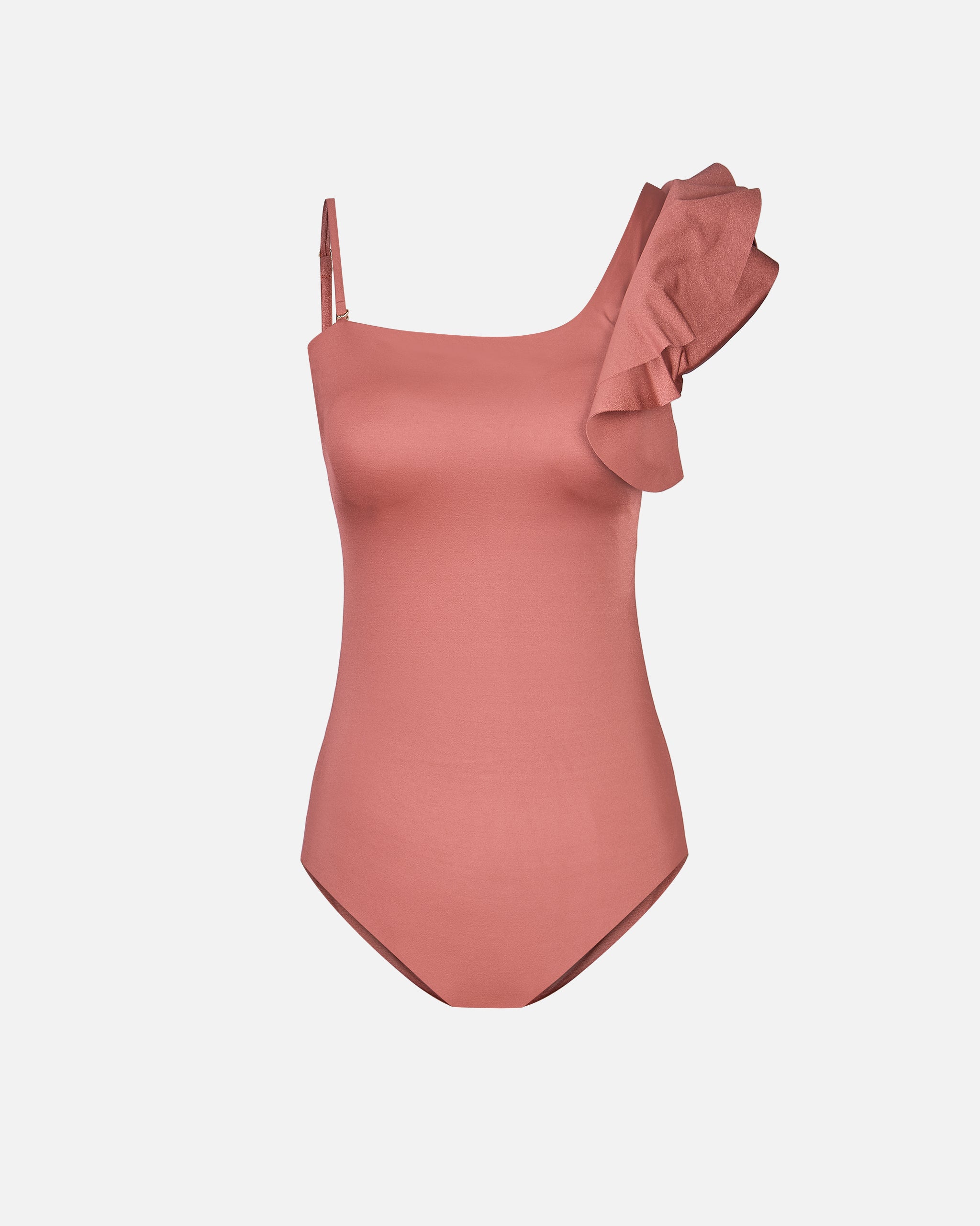 Traje de Baño Liso Vuelos en un Hombro