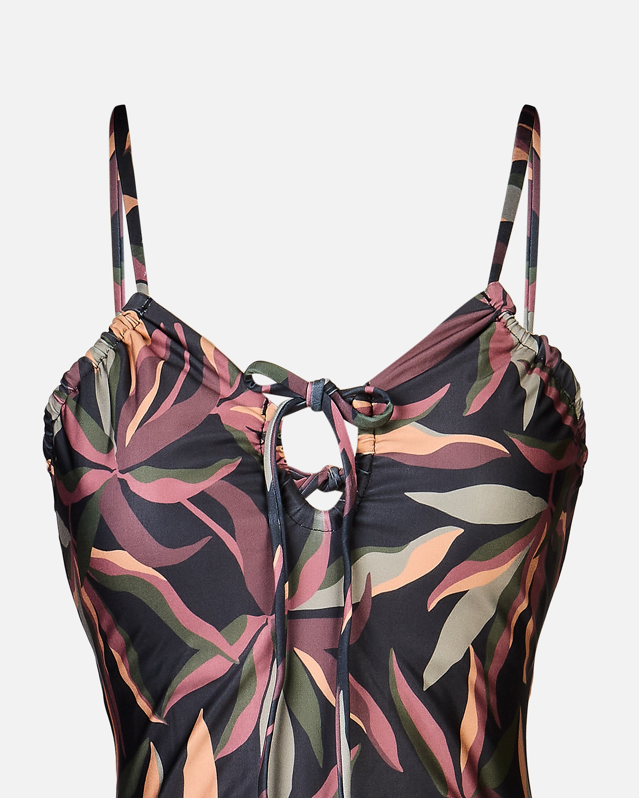 Traje de Baño Amarras Espalda Estampado Maxi Tropical