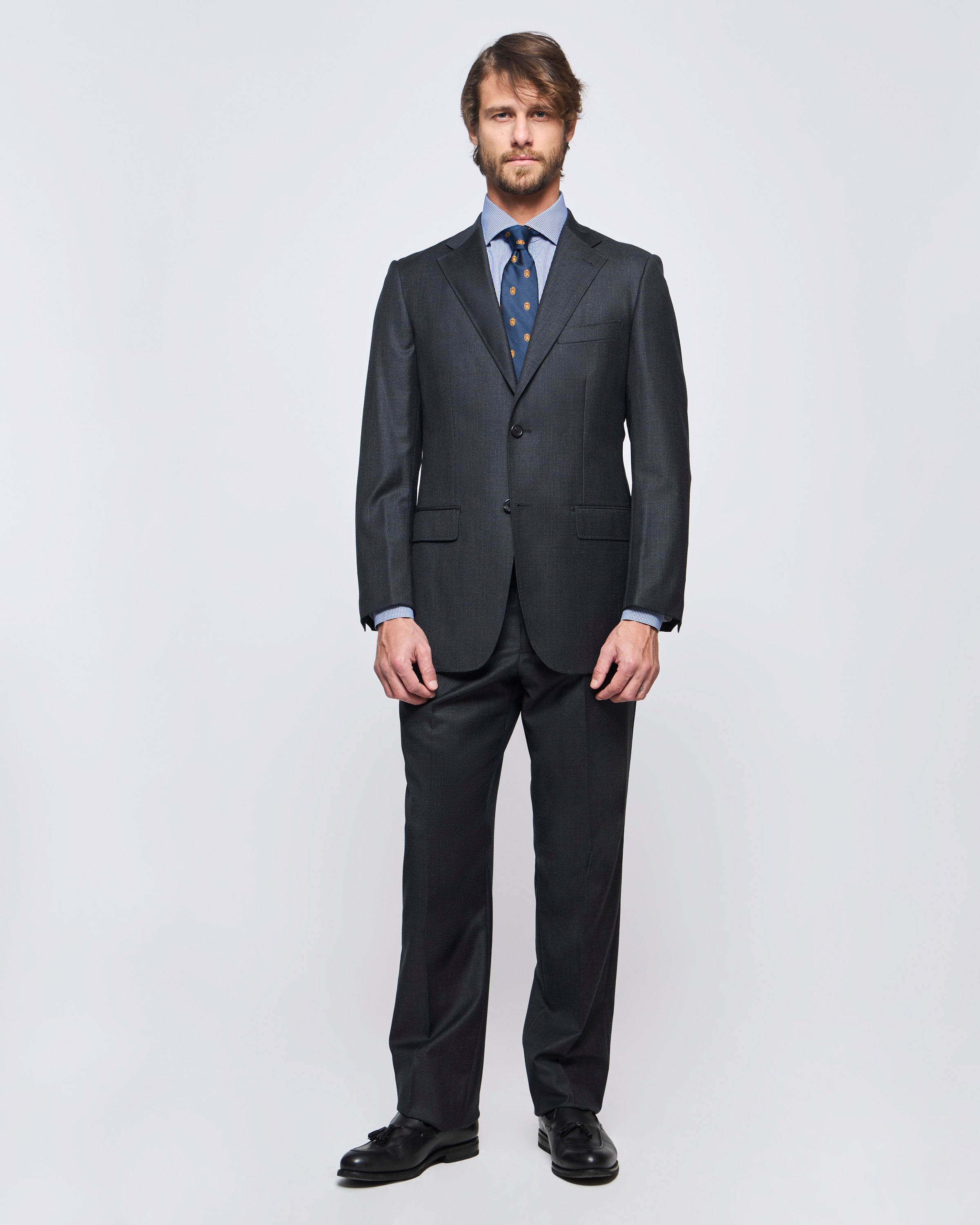 Traje Fantasía tela Italiana de Lana. Dos Botones dos Colas. Pantalón Sin Pinzas