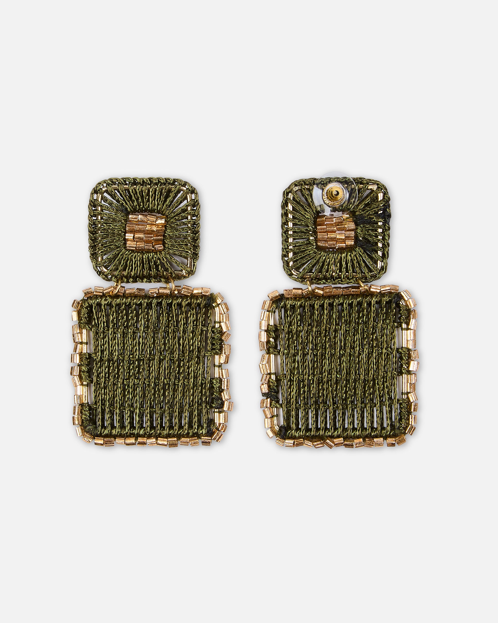 Aros Dos Cuadrados Tejidos con Mostacillas