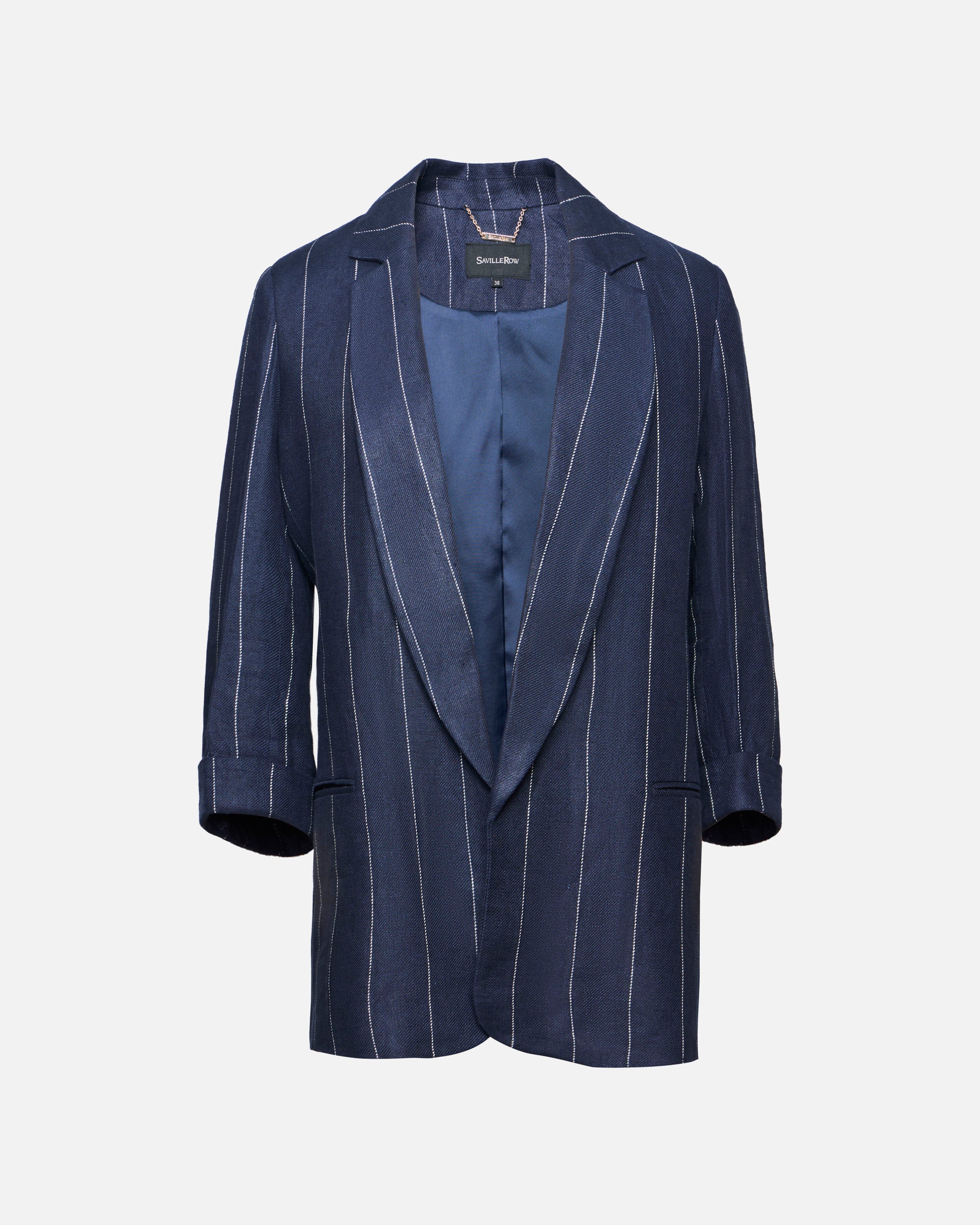 Blazer Lino Manga 3/4 Raya delgada Azul Blanco