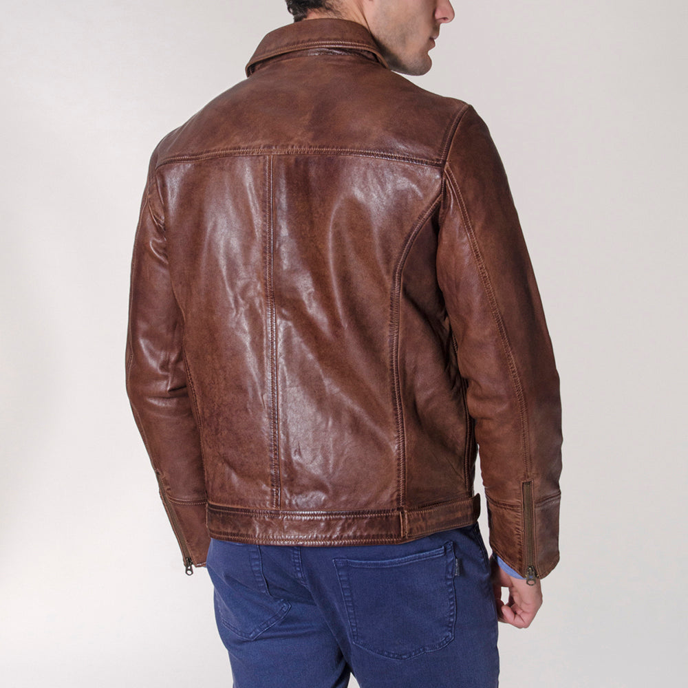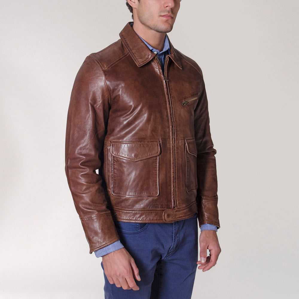 Nuestra Clásica Chaqueta de Cuero Vintage Traveler con un look espectacular y con Bolsillos de Parche.