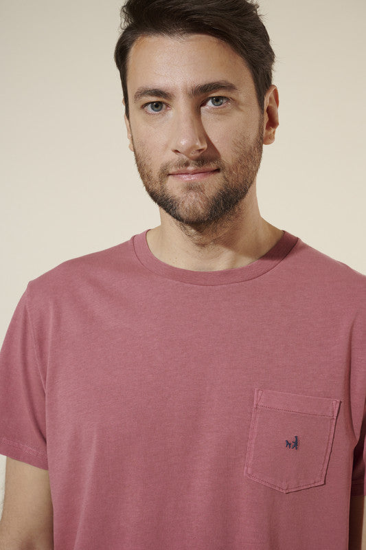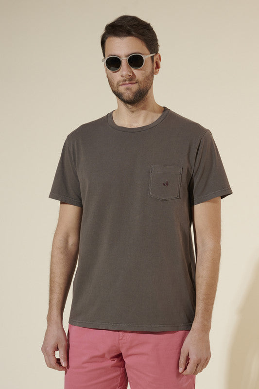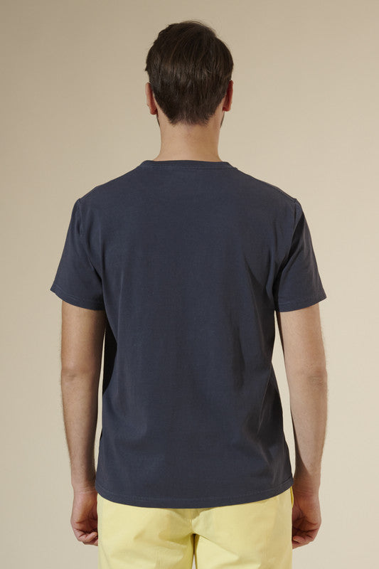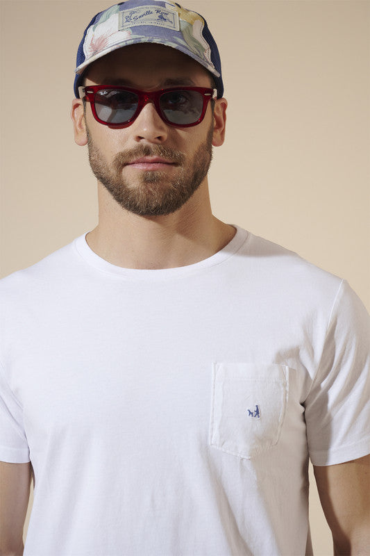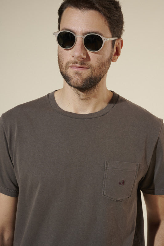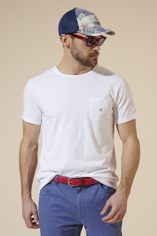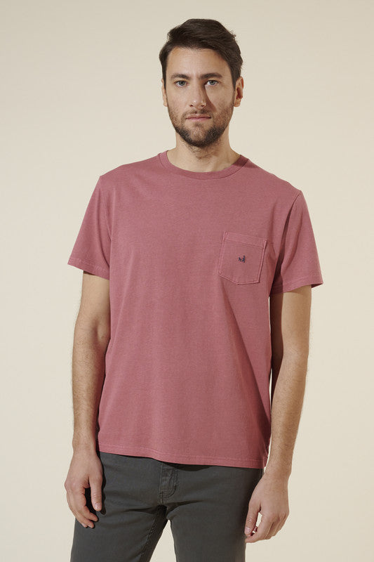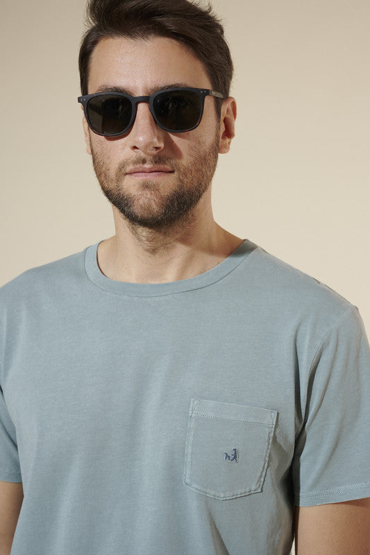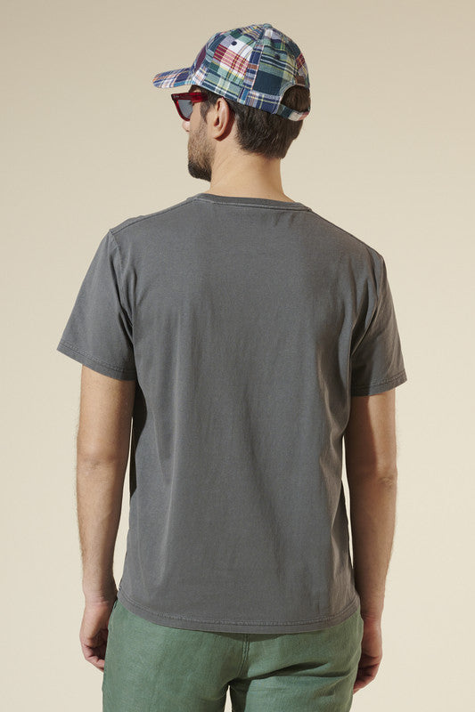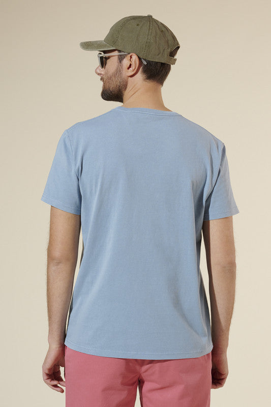 Polera Cuello Redondo con Bolsillo y Bordado Vintage