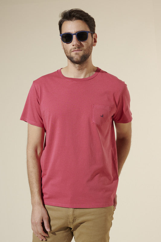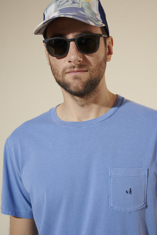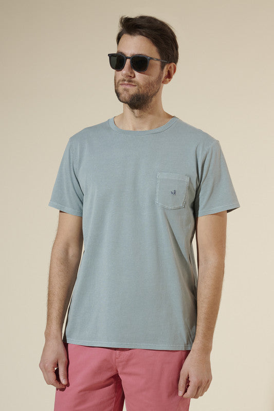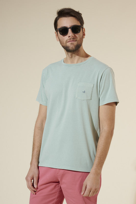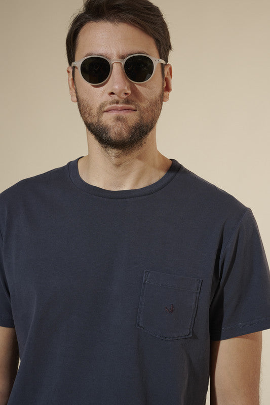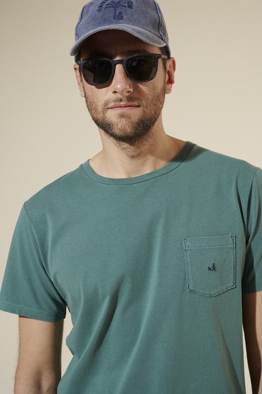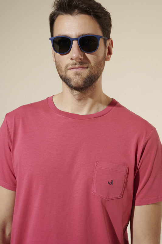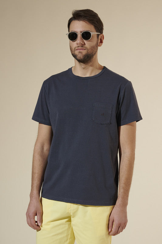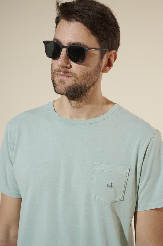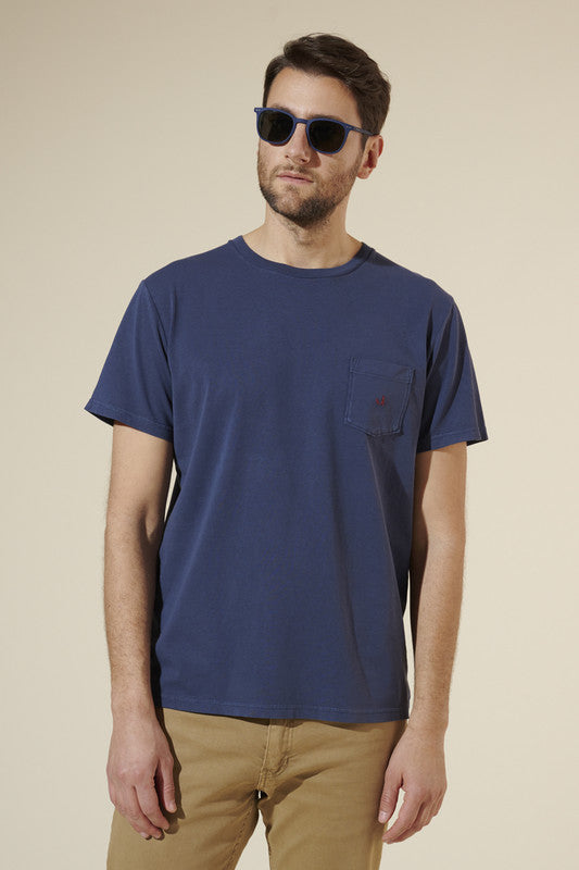 Polera Cuello Redondo con Bolsillo y Bordado Vintage