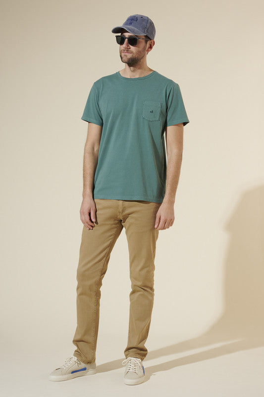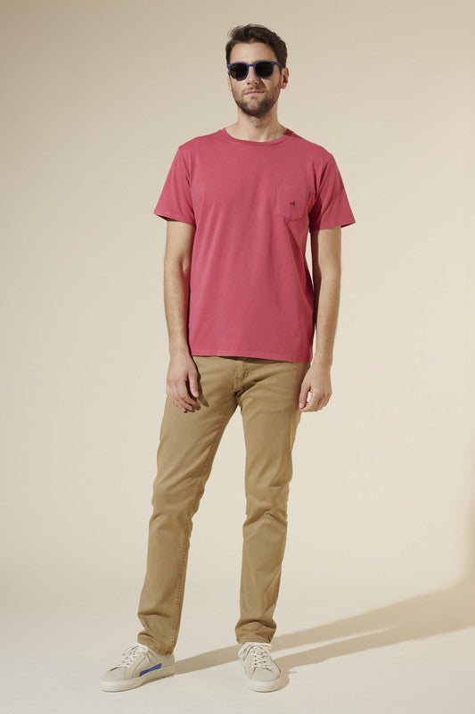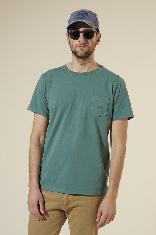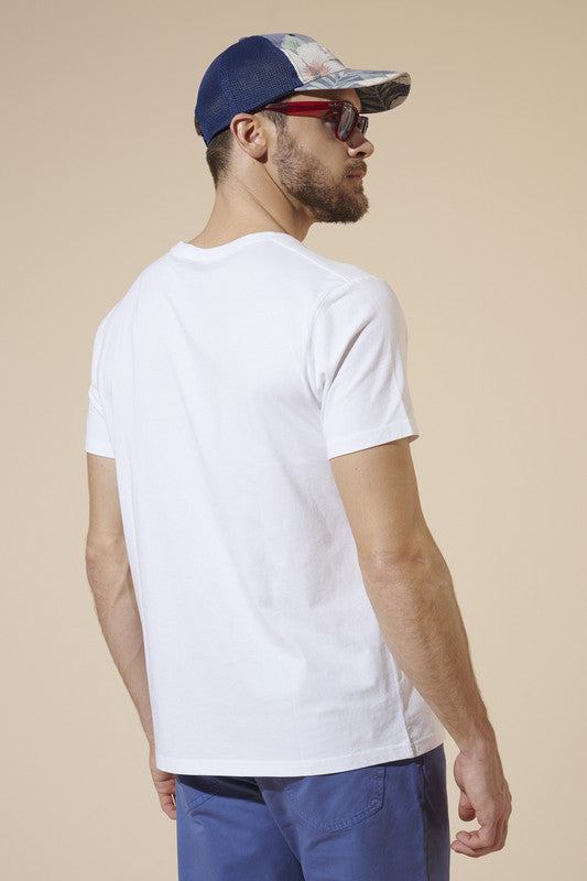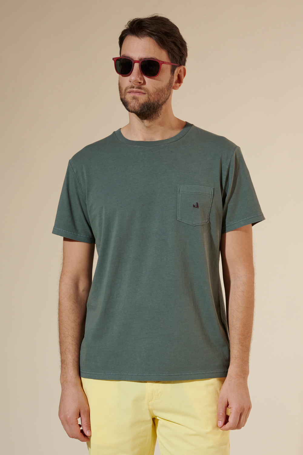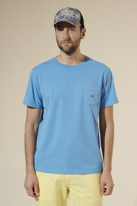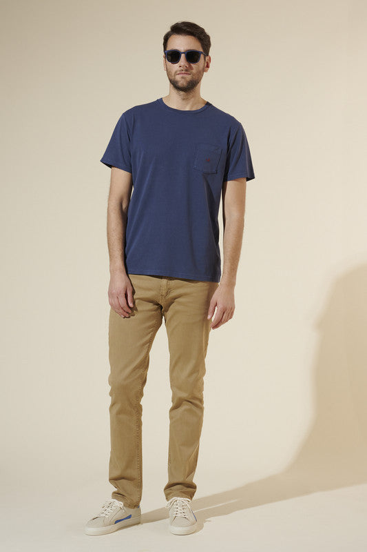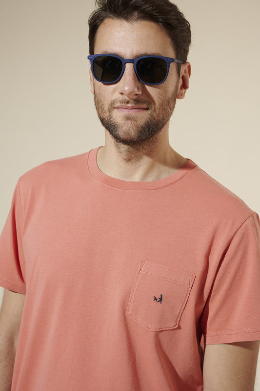 Polera Cuello Redondo con Bolsillo y Bordado Vintage